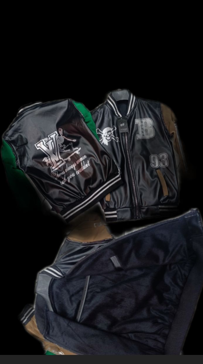 یه کار شیک و اسپرت برای کسایی که دوست دارند فرزندشان متفاوت بپوشد روبه کار چرم سیاه جنس تیر کمانی درجه یک میباشد استین رویه ها با۲ رنگ کرم و سبز ترکیب شده داخل کار همبافت مشکی به کار رفته دو استین رویه با زیب نما کار شده که زیبایی کار را دو چندان کرده