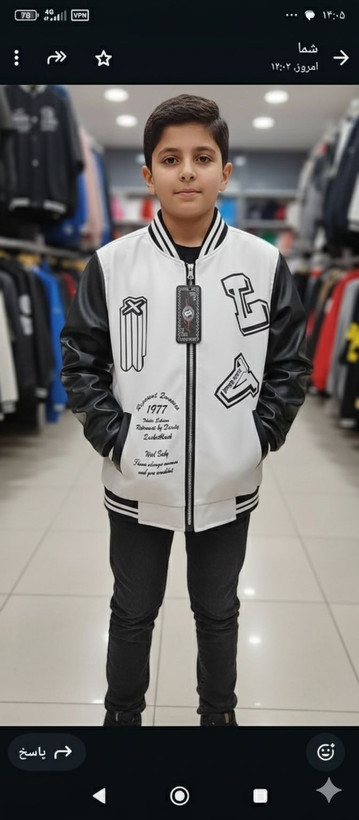 پسرانه بامبر بیسبالی یک کار شیک و جذاب جنس چرم سفید تیر کمانی درجه ۱ چاپ روی پیش های جلوی کار پشت رویه داخل تیسی دو رویه میباشد یقه کمر و موچی کش دو خط از تن خوری و زیبایی کار هر چقدر بگیم کمه یه کاپشن جذاب